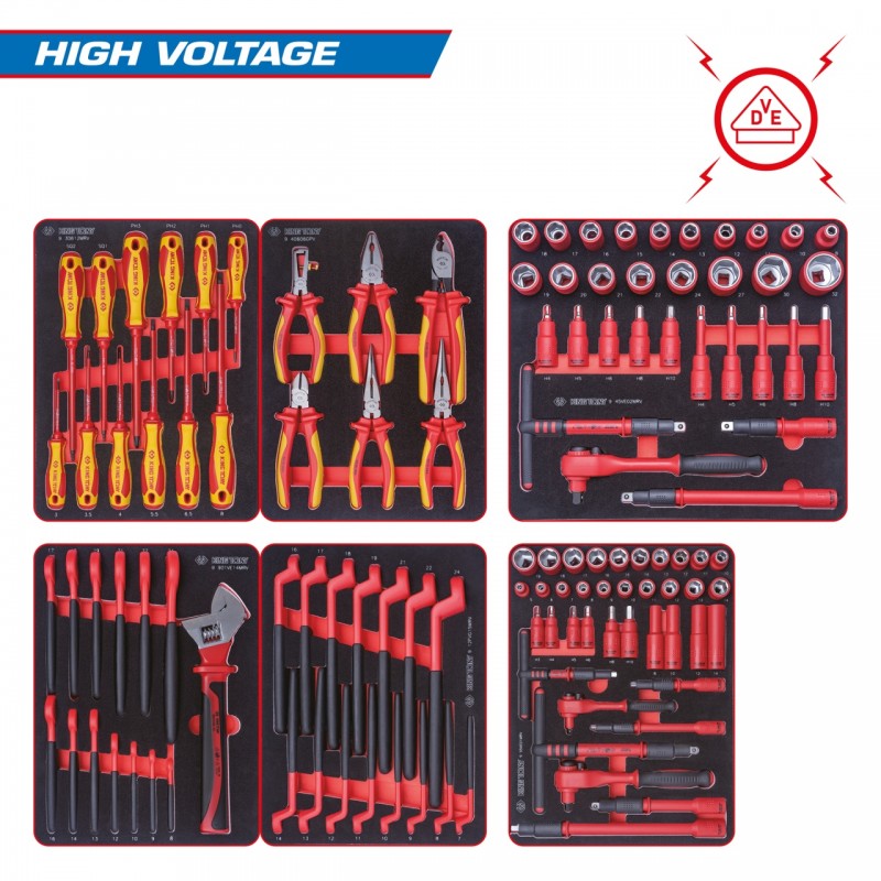Набор инструментов HIGH VOLTAGE для тележки, 6 ложементов, 117 предметов KING TONY 932-117VEMRVD