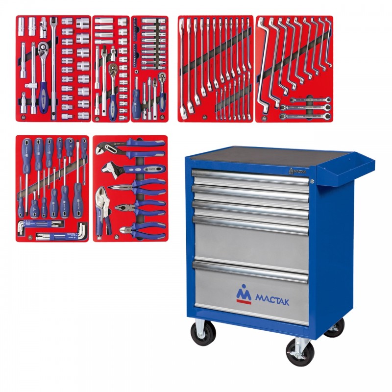 Набор инструментов СТАРТ в синей тележке, 161 предмет МАСТАК 52-05161B