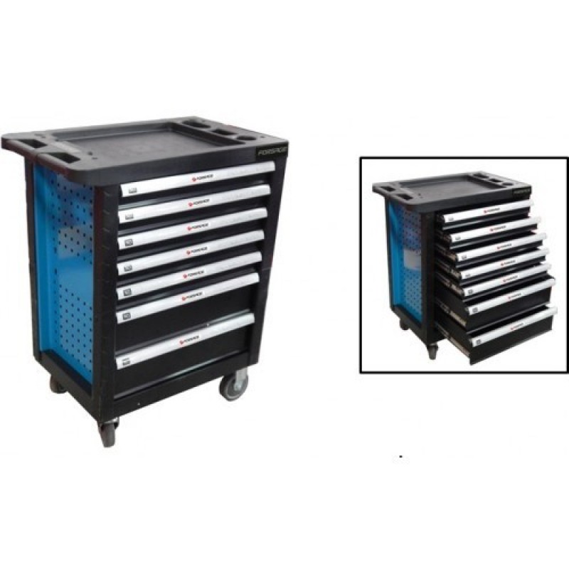 Forsage Тележка инструментальная 7-и полочная(синяя) с пластиковой защитой корпуса+2боковые перфорации,460х770х980(полки:65х400х530-5шт,140х400х530мм-2шт) F-1141117B