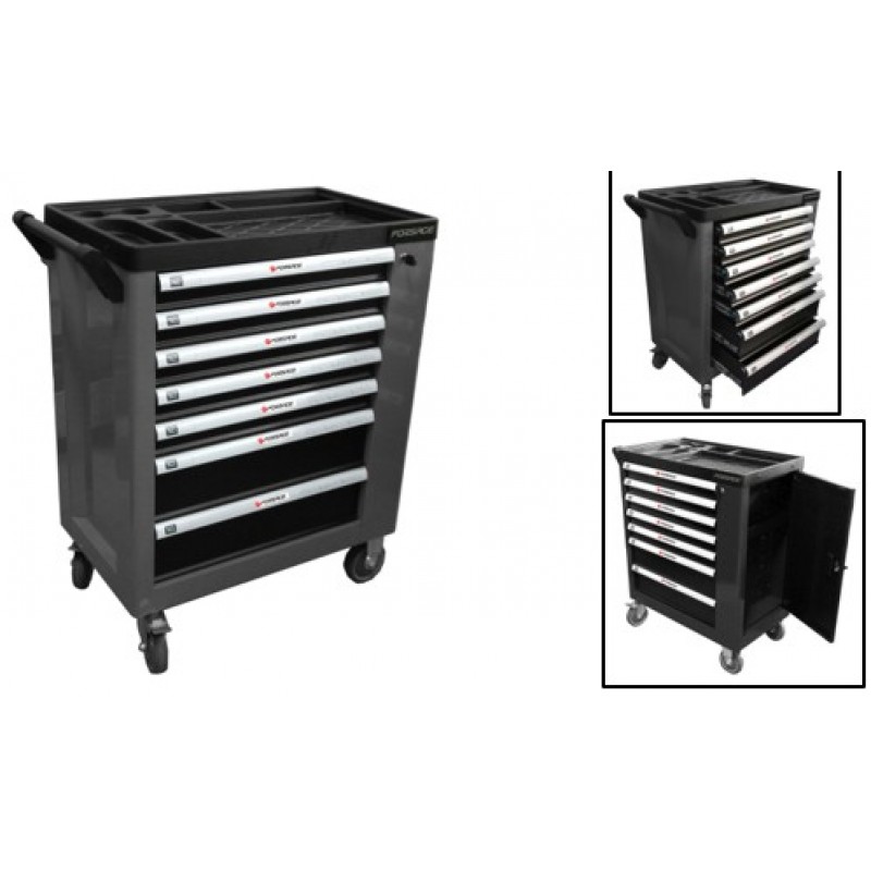 Forsage Тележка инструментальная 7-ми полочная (черная), с дополнительной боковой секцией, 600х840х980 (полки:65х400х530-5шт,140х400х530мм-2шт) F-1141127(126)