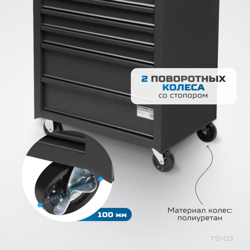 Тележка инструментальная, 7 ящиков, OPTIMUS TS-03 для хранения инструмента и расходных материалов обеспечивает удобство и мобильность при выполнении любого вида работ. Цельнометаллический корпус тележки легко выдерживает нагрузку свыше 150 кг на столешницу. Специальный нескользящый коврик на столешнице надежно защищает поверхность от повреждений и позволяет надолго сохранить ее внешний вид.