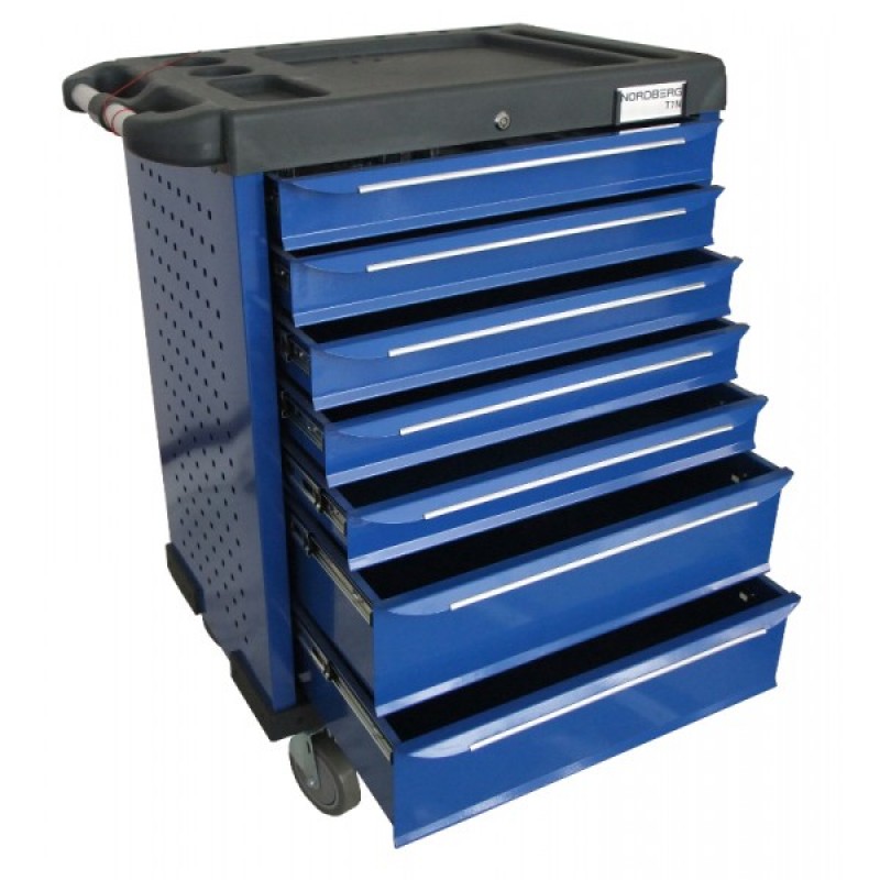Тележка для инструмента синяя7 полокПластиковая защита корпусаБоковые перфорации