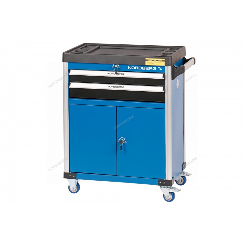 Тележка инструментальная, 2 выдвижных ящика, 2 полки с дверцами NORDBERG T4