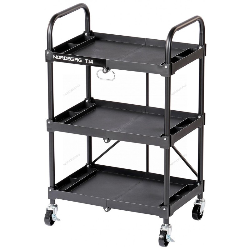 Тележка инструментальная, 3 пластиковые полки, складная NORDBERG T14