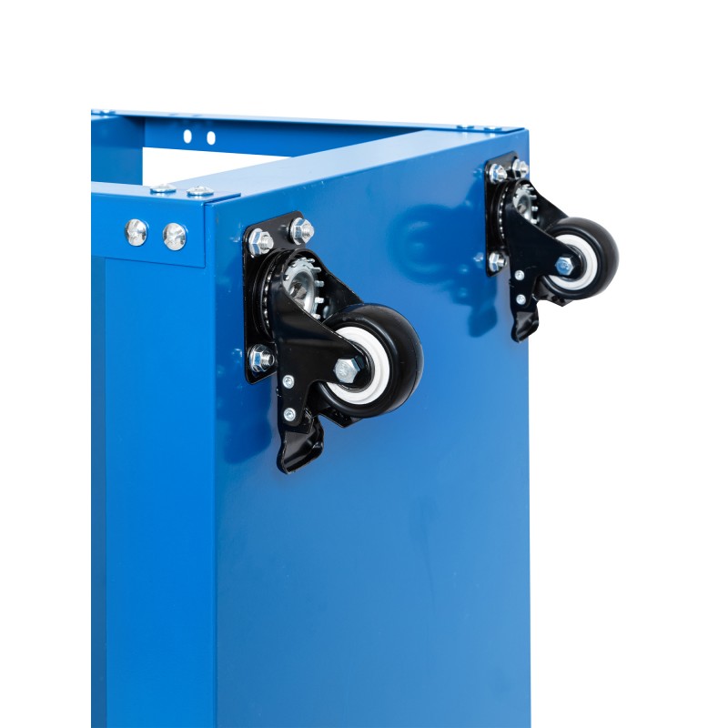 В конструкции имеются 4 поворотных колеса, 2 из них со стопорами.