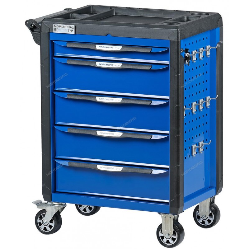 Тележка инструментальная, 5 выдвижных ящиков, с системой защиты от опрокидывания, синяя NORDBERG T5P(B)