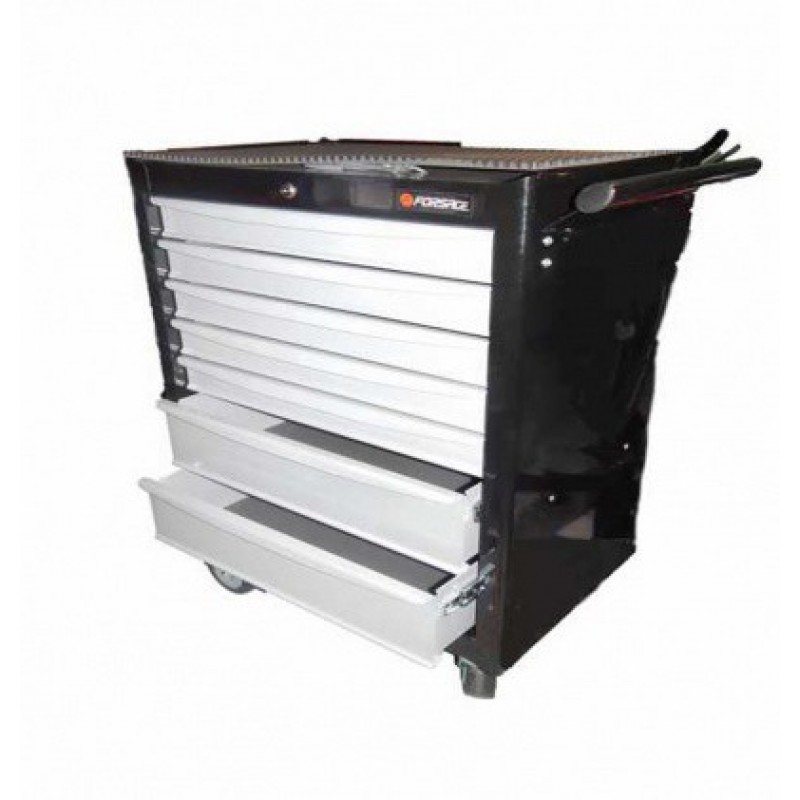 Тележка инструментальная Forsage 50217-Black(Forsage), 7 полок (черная)Тележка инструментальная, 7 полок (черная)Находит широкое применение на производствах, станциях технического обслуживания, авторемонтных мастерских, и гаражах опытных автолюбителей. Данное оборудование востребовано из-за своей простоты и удобства использования, эргономичности и практичности, ведь иметь такой инструментальный шкаф с колесами очень полезно, благодаря удобству перемещения в любое место мастерской или гаража. Габариты: Д80xШ50xВ103 смВес: 80кг