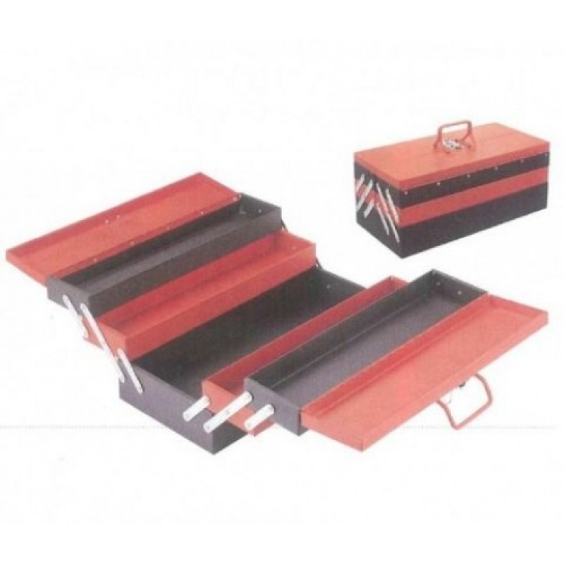 Ящик инструментальный раскладнойРаскладной металлический ящик на 3 уровня. Единица товара: Штука Вес, кг: 2,50 Длина, мм: 448 Ширина, мм: 95 Высота, мм: 186