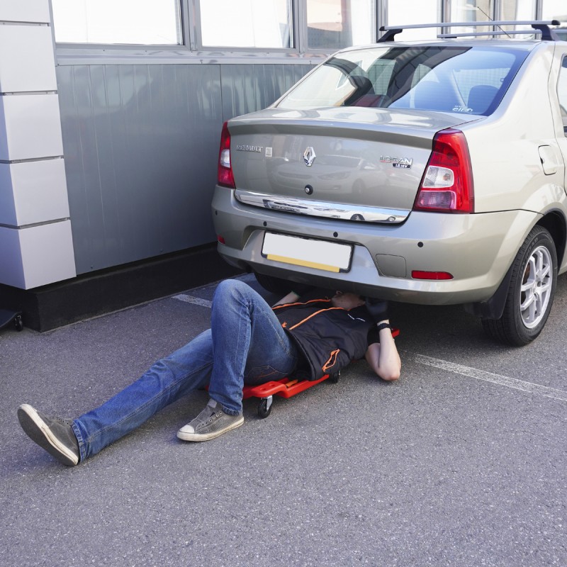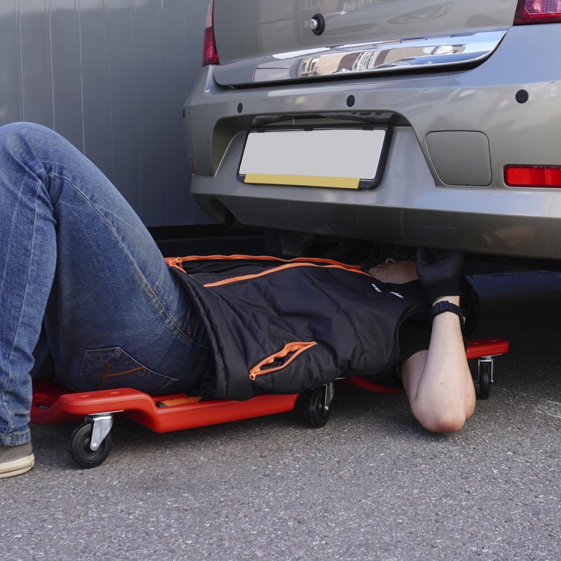 Лежак ремонтный подкатной, пластиковый, красный WDK-84068R