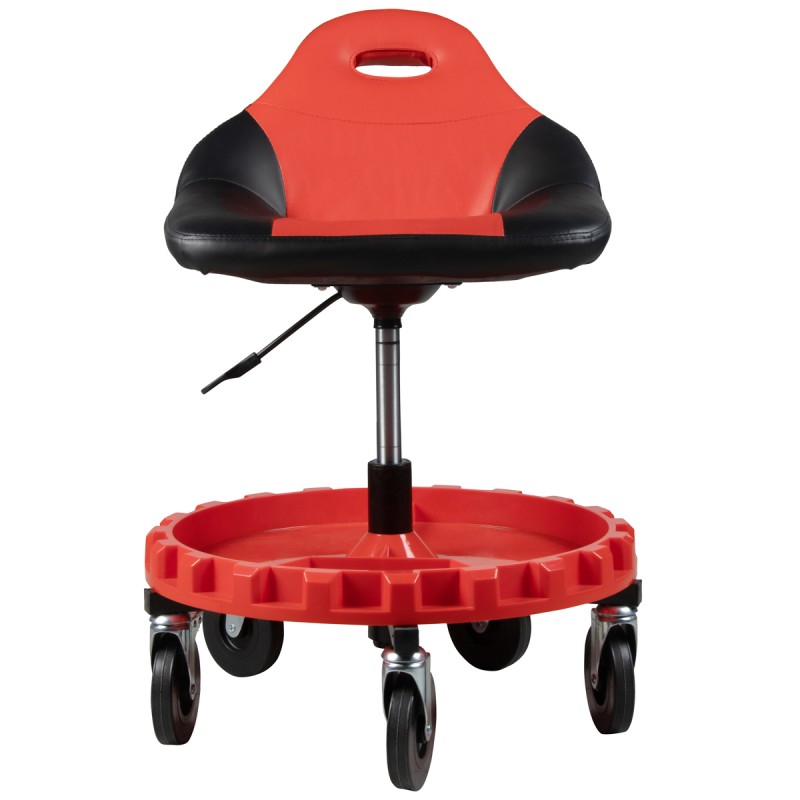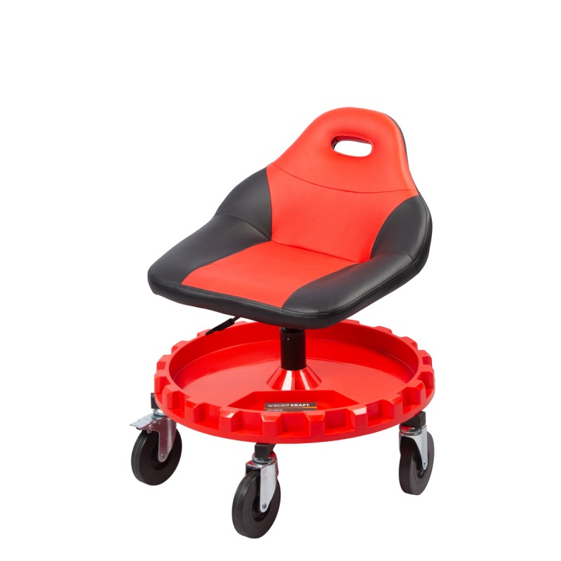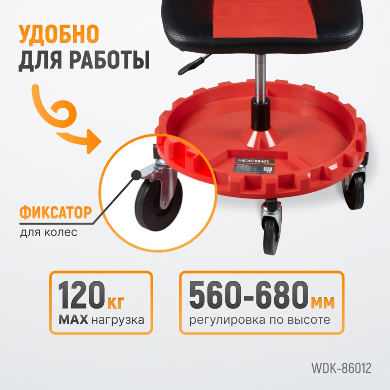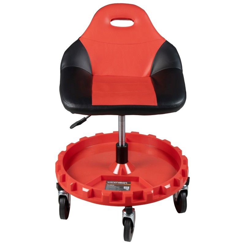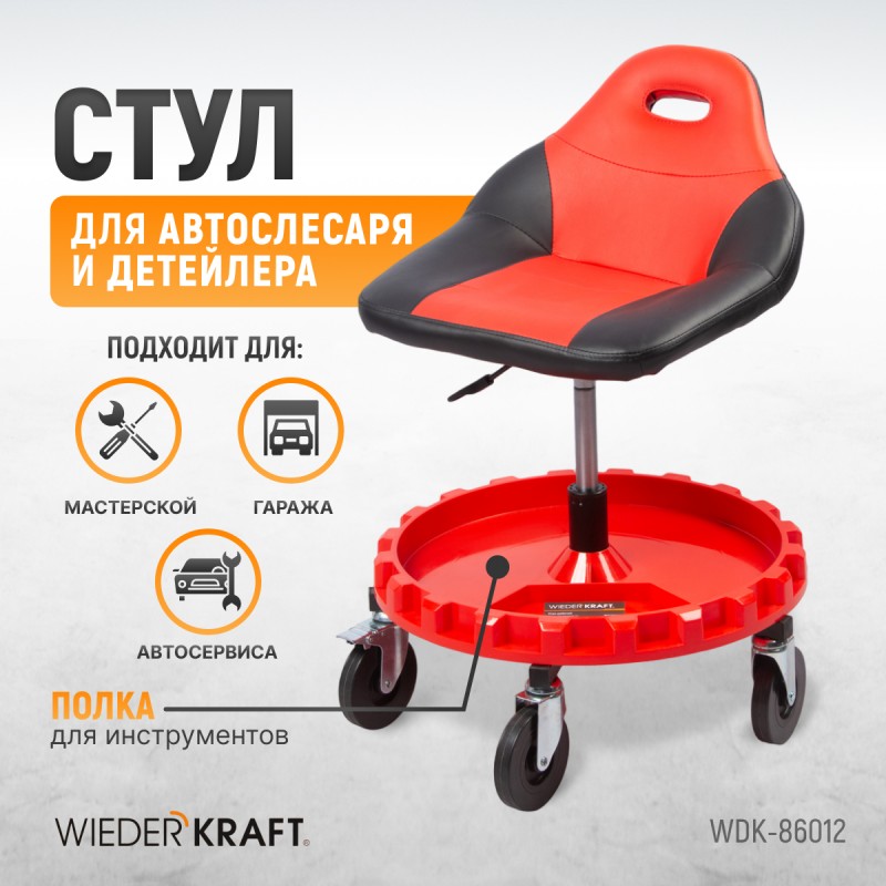 Стул рабочий для автослесаря с лотком для инструмента, мягким покрытием и спинкой, табурет механика, сиденье для детейлера с микролифтом, стул мастерской. WiederKraft WDK-86012