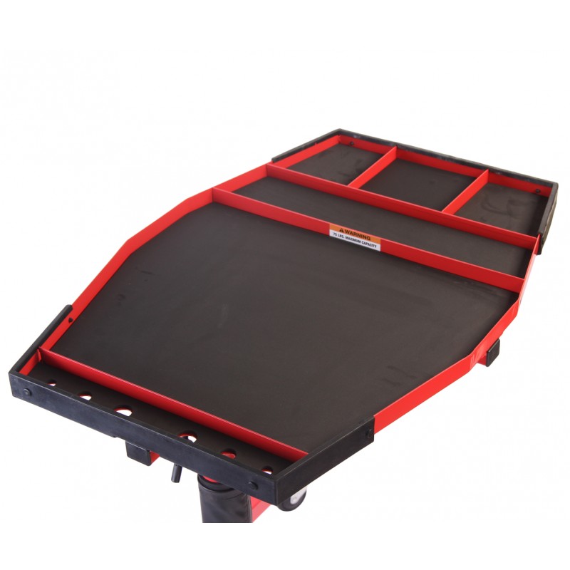 Высота столешницы регулируется в диапазоне 875-1200 мм, что позволяет работать с любым классом автомобиля.