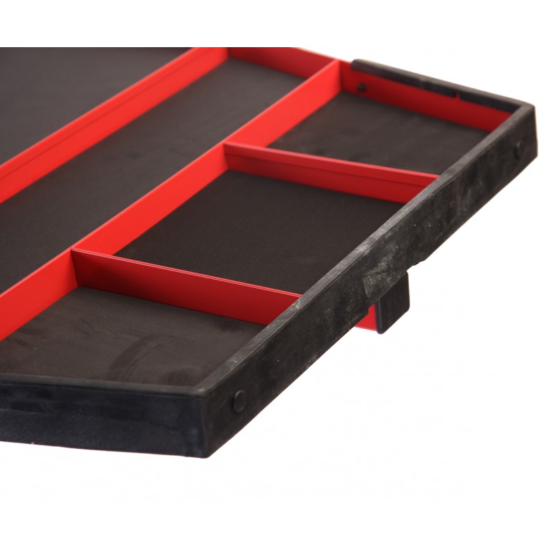 Столешница оборудована лотками с прорезиненным антискользящим покрытием, а также пластиковыми накладками для предотвращения возможности поцарапать автомобиль.