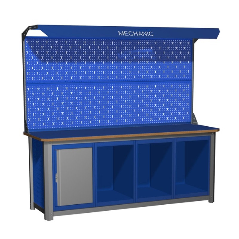 Размеры (ВхШхГ) : 2000x870x700 ммНаличие экрана: с двойным экраном и подстветкойНаличие тумб: четырехтумбовыйВиды тумб: с дверьюВид столешницы: сталь (6 мм) и фанера (24 мм)Верстак MECHANIC Э2С — удобная четырехтумбовая модель, которая идеально подойдет для мастерской, столярной или автосервиса. Три тумбы представляют собой открытые полки для хранения инструментов, одна тумба — это полка с дверью, в которую можно поместить документы и другие важные предметы. Предусмотрен экран и подсветка для удобства работы. Столешницы верстака отличается прочностью, изготавливается из двух слоев – 6-миллиметровой стали и 24-миллиметровой фанеры.