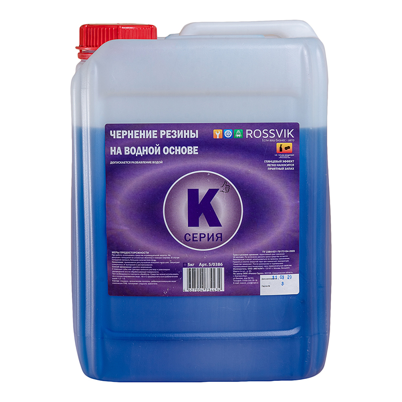 Чернение резины "серия К ROSSVIK" является средством профессионального уровня на водной основе для очищения и полирования шин автомобиля, а также других деталей выполненных из резины. Достаточно быстро возвращает черный насыщенный цвет, добавляет блеск, тем самым обновляя поверхность. Защищает от старения, потертостей и потери насыщенного цвета. Используется как на станциях технического обслуживания, автомобильных сервисах, так и в бытовых условиях. Поставляется в пластиковой канистре емкостью 5 л.