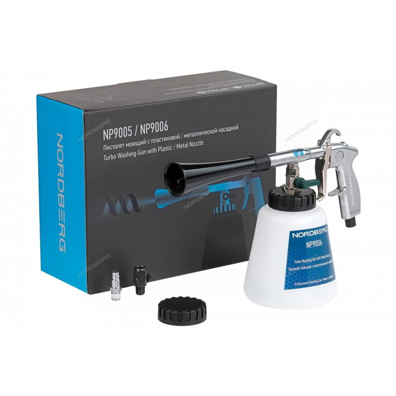 Пистолет моющий, для химчистки, торнадор (tornador) NORDBERG NP9006 предназначен для быстрой, удобной мойки деталей разной формы и размера. Используется в работе с легковым, средним коммерческим и грузовым транспортом. Может применяться как в автосервисе в качестве профессионального гаражного инструмента.Глубоко эффективно вычищает любые поверхности: текстиль, пластик, кожу, резину и т.д. Можно применять как для локального удаления загрязнений, так и использовать при полной химчистке салона.Очищает недоступные места и воздуховоды с помощью давления и вихревого потока выбрызгивающей жидкости. При работе полностью очищает и поднимает ворс у покрытияОсобенности модели:Регулятор входного давления и быстросъемное соединение в комплекте.Металлическая, вращающаяся насадка для очистки различных поверхностей. Высокая прочность и удароустойчивость. Моющий объем бака – 1 л