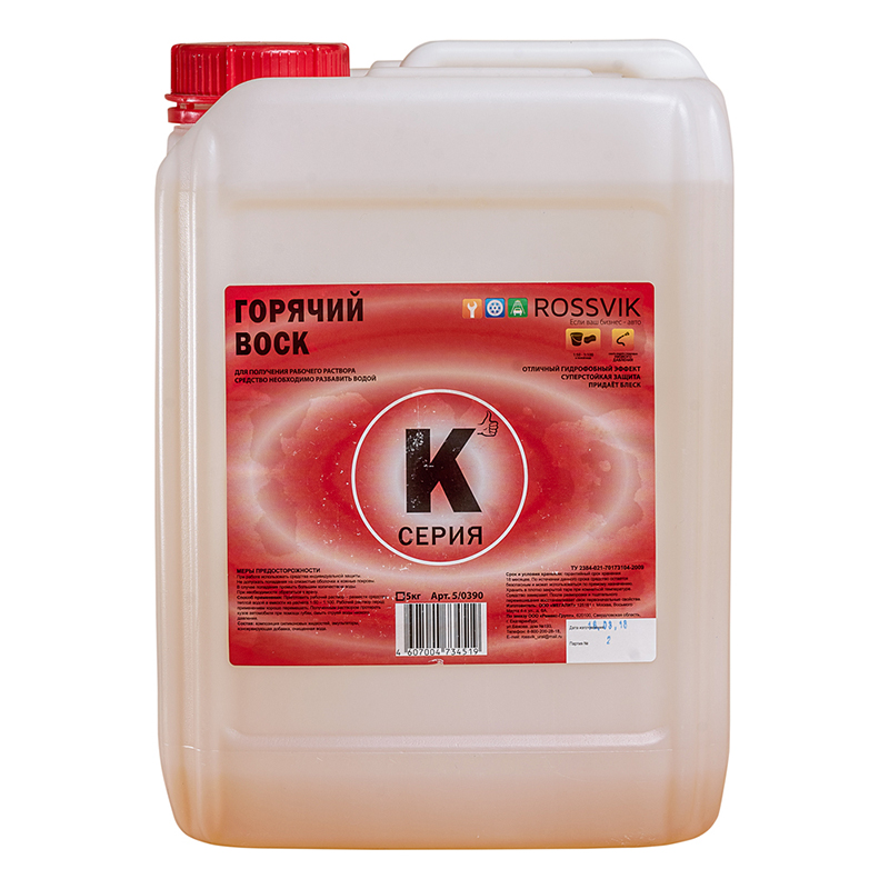 Воск горячий "серия К ROSSVIK" обладает отличным гидрофобным эффектом, суперстойкой защитой, придает блеск кузову.