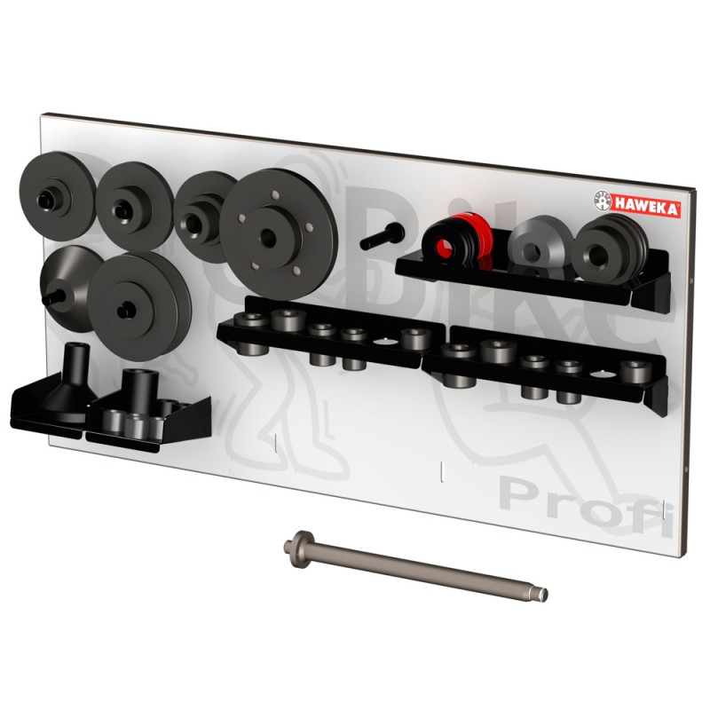 Допкомплект Professional для мотосистемы Standard состоит из: (19мм вала, быстрой гайки, центровочных втулок и специальных центровочных адаптреов для задних колес мотоциклов с консольной подвеской (monolever) и настенного дисплея)