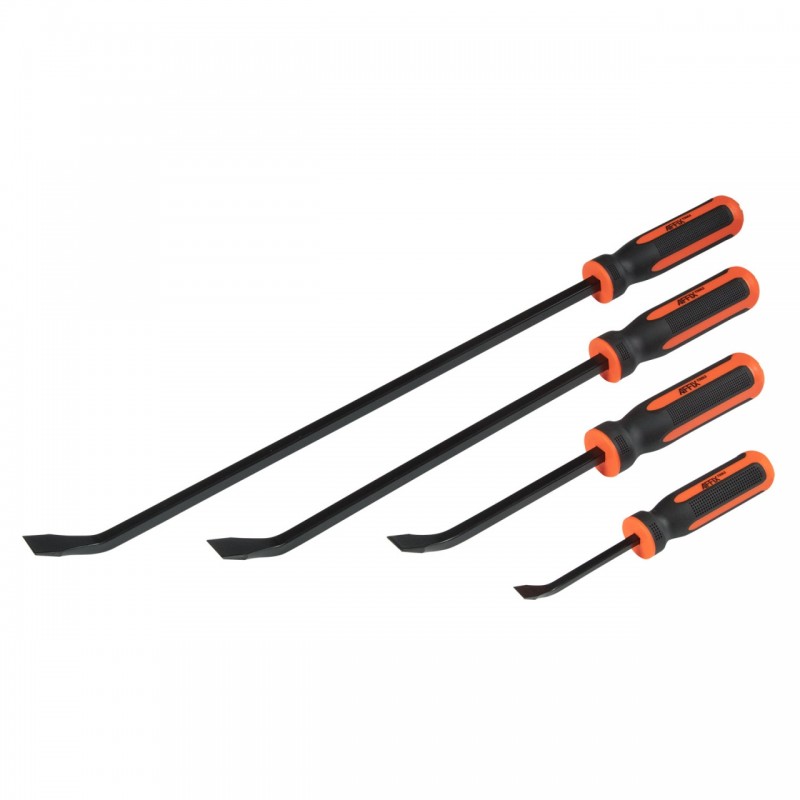 ударной нагрузки. Особенности • Изготовлены из инструментальной кованой стали • Цельнометаллический стержень • Композитный материал рукоятей • Длина 200, 300, 450, 600 мм Количество предметов – 4 Материалы – сталь, пластик + термопластичная