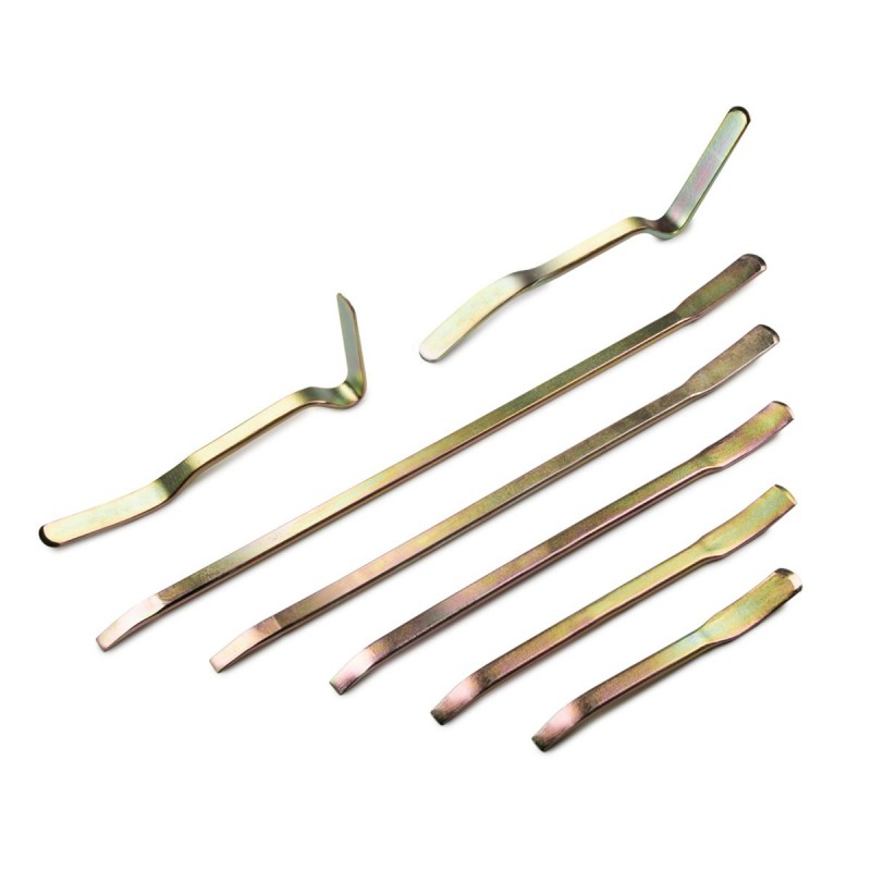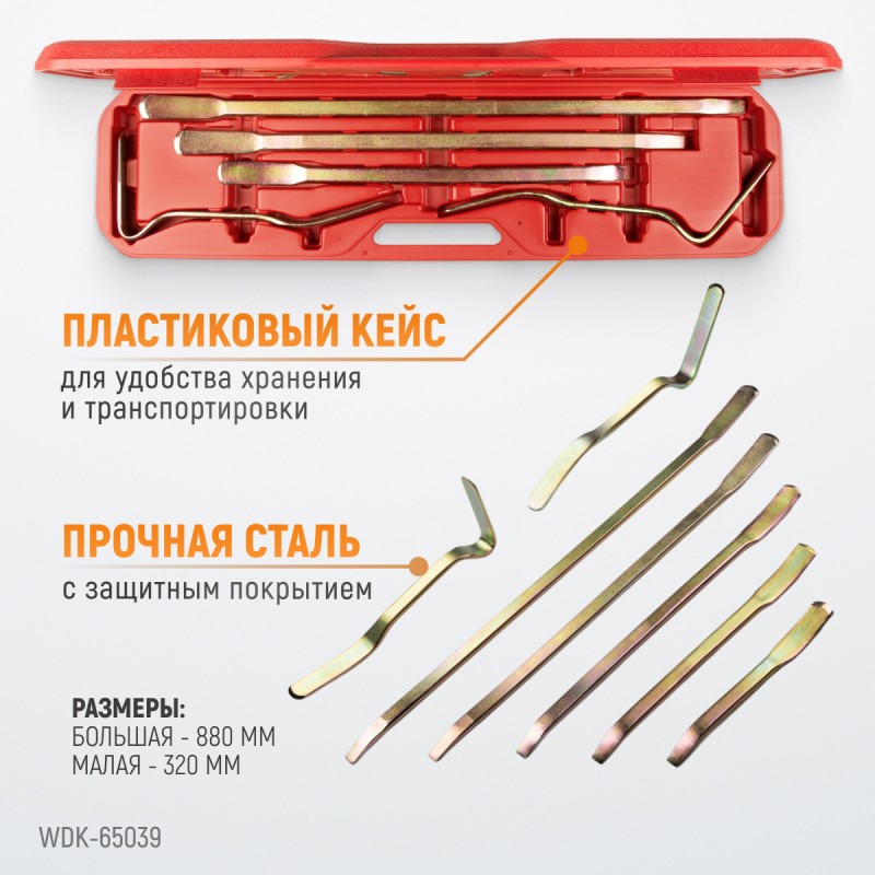Изделия набора рихтовочных монтажных лопаток в пластиковом кейсе WiederKraft WDK-65039 изготовлены из высокопрочной стали с защитным покрытием.