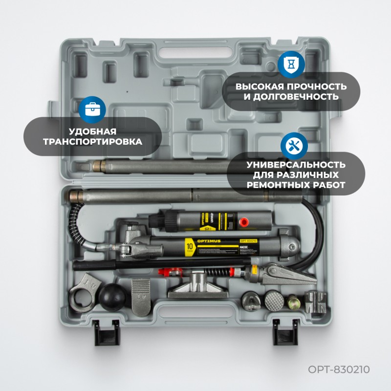 Набор гидравлический Optimus OPT-830210 с усилием 10 тонн в пластиковом кейсе.