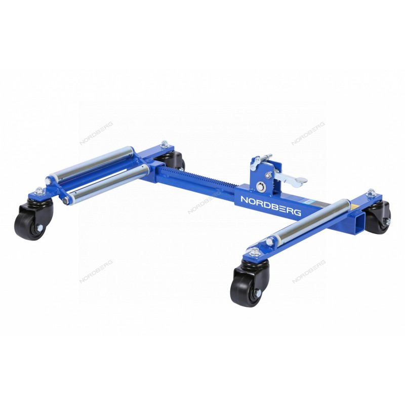 NORDBERG N3S9 — тележка под колесо для перемещения авто.ФУНКЦИОНАЛПредназначена для ручного перемещения автомобилей массой до 4 тонн с заблокированными колёсами, трансмиссией и рулевым управлением. Обеспечивает безопасный и надёжный подъём каждого колеса.ПРЕИМУЩЕСТВАХраповой подъёмный механизм — обеспечивает точный, контролируемый и безопасный подъём без усилий, с возможностью фиксации в нужном положении;Компактная конструкция и раздвижная рама — регулируемое расстояние между роликами позволяет использовать тележку с разными диаметрами колес;Возможность подключения реверсивной трещотки, гаечного ключа или гайковёрта к приводному валу упрощает процесс подъёма;Поворотные и опорные ролики — обеспечивают манёвренность и устойчивость тележки при использовании;Надёжная фиксация — собачка и стопор в конструкции изделия предотвращают случайный спуск и обеспечивают стабильную работу.NORDBERG N3S9 — это прочная и надёжная тележка для перемещения автомобилей, созданная для профессионалов. Продуманная конструкция, простота использования и безопасность делают её отличным выбором для сервисных центров, гаражах и на стоянках где важно быстро и безопасно маневрировать автомобилем на ограниченной площади.