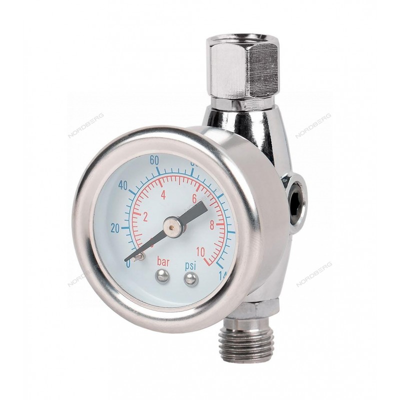 Регулятор давления воздуха для краскопультов NORDBERG NP8003 предназначен для оперативной настройки давления воздуха непосредственно в процессе покраски.