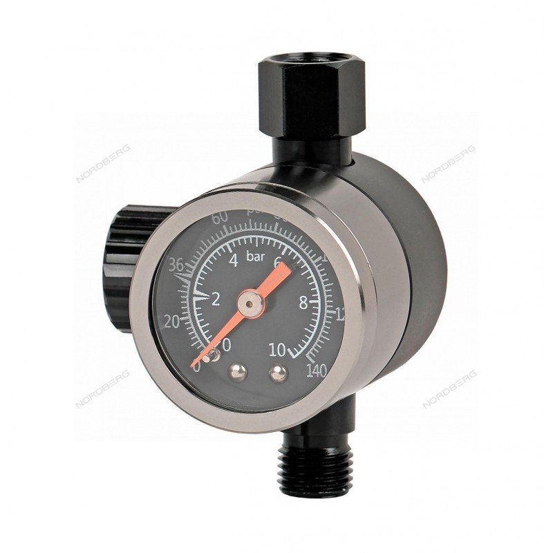 Регулятор давления воздуха для краскопультов NORDBERG NP8004 ПРОФИ с тефлоновым покрытием предназначен для оперативной настройки давления воздуха непосредственно в процессе покраски.