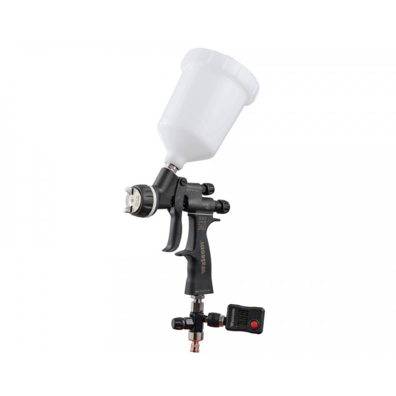 — небольшой расход воздухаНаличие дополнительной полезной опции - быстросъемного цифрового манометра на поворотном шарнире, позволяет быстро и удобно регулировать давление воздуха и отсоединять манометр перед началом окраски.