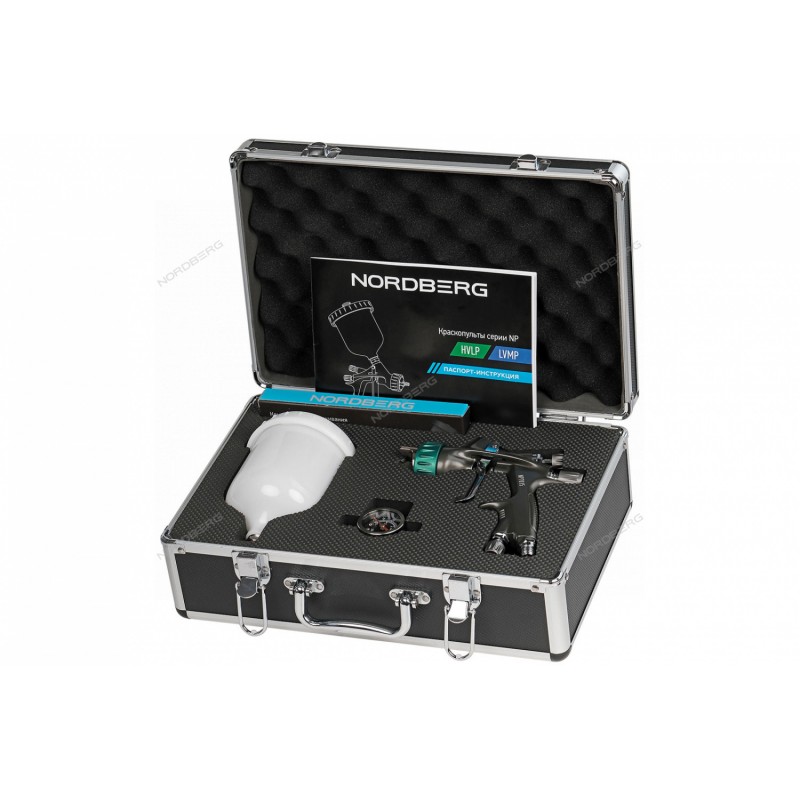 Краскопульт HVLP с верхним бачком, сопло 1,3 мм, алюминиевый кейс NORDBERG NP7015