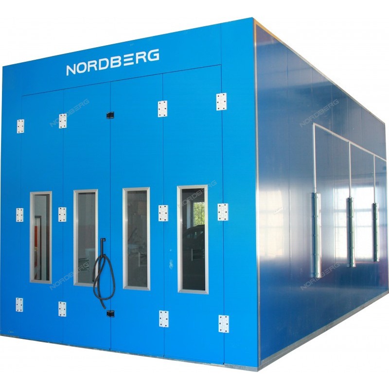 Окрасочно-сушильная камераNORDBERG MEDIOпредназначена для окрашивания кузова автомобиля, запасных частей, а также сушки в помещении, защищённом от пыли. Камера представляет собой кабину на металлическом основании с вентиляторной группой, обеспечивающей избыточное давление воздуха внутри и стабильный воздухопоток.ФУНКЦИОНАЛПокраска — поддержка температуры 20–25 °C в зависимости от краски.Сушка — температура 60–80 °C с учётом типа краски и пластмассовых деталей.Продувка — кратковременный режим для удаления летучих соединений и остывания после сушки.ПРЕИМУЩЕСТВАПрочная конструкция: кабина изготовлена из сэндвич-панелей с усиленными рёбрами жёсткости, металлическое покрытие толщиной 0,6 мм и внутренним слоем пенополистирола. Это продлевает срок службы и предотвращает деформацию панелей из-за давления воздуха.Эффективная вентиляция: перфорированные панели из оцинкованной стали обеспечивают равномерное распределение воздухопотока.Надёжное основание: профилированный металл с 5 рядами решёток и дополнительными металлическими панелями, рассчитанными на нагрузку 800 кг на колесо. Возможен монтаж на пол или в бетонный приямок.Дополнительные опоры: под 2-м и 4-м рядами решёток для повышенной прочности.Качественное освещение: боковые LED-светильники вмонтированы в панели вертикально, а угловые расположены по всей длине камеры. Энергосберегающие лампы обеспечивают комфортную работу.Продуманная конструкция двери: операторская дверь усилена изнутри, имеет смотровое окно и может устанавливаться в любое место камеры.Надёжная безопасность: встроенный противопожарный датчик автоматически отключает горелку при превышении допустимой температуры.Мощные и тихие вентиляторы: радиальные электромоторы с низким уровнем шума и вибрации (7,5 кВт, 30 000 м³/ч).Удобное переключение режимов: заслонка с пневмоклапаном переключает режимы нагрева и сушки без необходимости отключения моторов.Гибкость установки: вентиляторы можно размещать сбоку, сзади или сверху камеры (для верхнего крепления требуется дополнительная конструкция).Высокоточный контроль: японский температурный контроллер Shinko позволяет программировать 2 режима работы, сохраняя настройки на длительное время.Эффективный нагрев: камера оборудована итальянской дизельной горелкой Riello.Полный комплект фильтров: поставляются все необходимые фильтры для бесперебойной работы камеры.УДОБСТВО ИСПОЛЬЗОВАНИЯУдобный пульт управления с контролем температуры, таймером сушки и системой аварийного отключения.Простая настройка температуры и вентиляции.Надёжная конструкция с шумоизоляцией и герметичными дверями.КОМПЛЕКТАЦИЯКабина из сэндвич-панелей.Система освещения.Теплообменник.Вентиляция.Фильтры.Пульт управления.Элементы крепления. *Вентиляционные короба в комплект не входят!Для ввода камеры в эксплуатацию необходимо дополнительно приобрести:S7-1 Герметик белый (Glass Glue, white) – 5 шт.S7-2 Герметик полиуретановый (Glass Glue, polyurethane) – 5 шт.Воздуховодные короба (количество зависит от размеров помещения).Бак для дизельного топлива – 1 шт.Провода для подключения пульта управления (длина зависит от размеров помещения).Въездные трапы (при установке камеры на пол) – 1 комплект.Окрасочно-сушильная камераNORDBERG MEDIOобеспечивает высокое качество окраски и соответствует требованиям автосервиса.