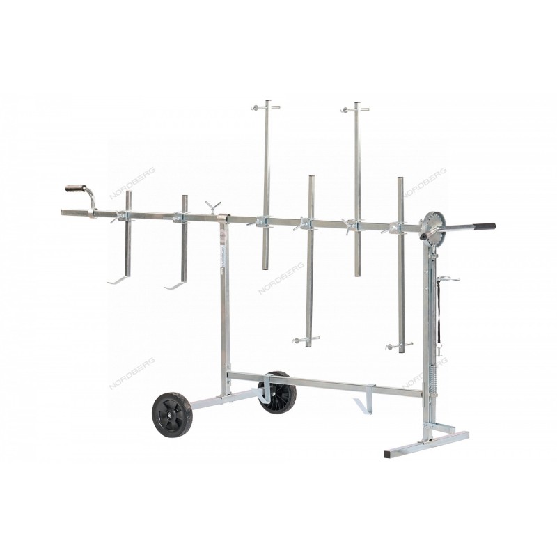 Универсальная вращающаяся окрасочная стойка NORDBERG S2Вращающаяся стойка предназначена для окраски и сушки деталей кузова, а также может использоваться при сборке/разборке деталей во время их подготовки к последующей окраске. Закрепленная на стойке деталь легко вращается на 360º и устанавливается под необходимым и удобным для ее окраски углом. Рабочая плоскость окрасочного стенда удерживается стопором, который при необходимости снимается нажатием на педаль. Имеет в комплекте удлинитель и 6 съемных держателей, которые крепятся к раме специальными зажимами, гарантируя их стабильное положение. Окрасочная стойка оборудована колесами для перемещения в рабочей зоне. На нижней перекладине размещены 2 крюка для хранения неиспользуемых элементов. Дополнительно оснащена держателем для размещения краскораспылителя, что создает значительные удобства при смене положения детали. Поворотная стойка отличается простой и надежной конструкцией, элементы которой изготовлены из оцинкованной стали.
