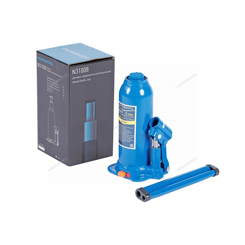 Домкрат бутылочный NORDBERG N31008 – профессиональное грузоподъемное оборудование для сервисных работ в автотранспортных предприятиях, автомастерских и СТО.ФУНКЦИОНАЛГидравлический домкрат с ручным приводом способен поднимать различные виды грузов и транспортных средств до 8 тонн, обеспечивая надежную и безопасную процедуру подъема.ПРЕИМУЩЕСТВАГрузоподъемность 8 тПлавный подъем груза при небольшом рабочем усилии оператора, обеспечивается оптимальной конструкцией гидравлической системы домкратаВыдвижной винт 8 смМогут быть использованы в качестве рабочего элемента в более сложных устройствах, таких как прессы, трубогибы и прочее, где рабочий элемент располагается вертикально или горизонтальноНадежная эксплуатацияУДОБСТВО ИСПОЛЬЗОВАНИЯПростое использованиеМинимальное техническое обслуживаниеКОМПЛЕКТАЦИЯДомкрат NORDBERG N31008РукоятьПаспорт-инструкцияБутылочный домкрат NORDBERG N31008 – высококачественное силовое оборудование для выполнения подъемных работ при диагностике и ремонте автомобиля в автосервисах, шиномонтажах и автотранспортных предприятиях.