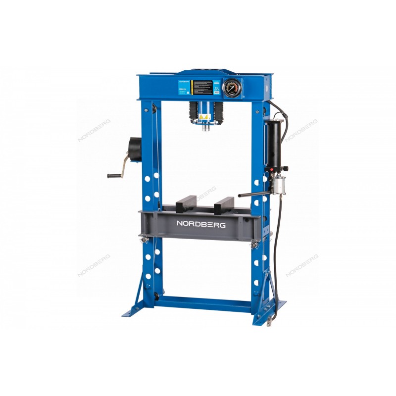 Гидравлический пресс с внешним пневмоприводом NORDBERG N3651AL – оборудование для выполнения различных ремонтных работ в автосервисах и СТО.ФУНКЦИОНАЛИспользуется при следующих ремонтно-монтажных работах: выпрессовки подшипников и втулок, правки валов, осей, профилей, для прессования заготовок.ПРЕИМУЩЕСТВАМаксимальное усилие 50 тоннФункция "умный клапан" позволяет подводить шток цилиндра пресса к обслуживаемой детали с увеличенной скоростью. После доводки и соприкосновения с поверхностью детали шток замедляет свой ход, чтобы оператор мог лучше контролировать процесс выпрессовки/запрессовки, при этом не возрастает усилие, прилагаемое оператором к ручке насосаНадежная сварная рама обеспечивает устойчивость конструкцииПорошковое покрытие корпуса препятствует образованию коррозииРегулировка положения рабочего стола с помощью лебедки облегчает труд оператораГидравлический насос с ручным приводом.УДОБСТВО ИСПОЛЬЗОВАНИЯРегулируемый рабочий стол глубиной 36 см позволяет работать с крупногабаритными деталями.Манометр для контроля рабочего давления расположен на уровне глаз.КОМПЛЕКТАЦИЯГидравлический пресс NORDBERG N3651ALПластины трапецииПаспорт-инструкцияГидравлический пресс с пневмоуправлением NORDBERG N3651AL – незаменимое оборудование в автосервисах, гаражах, позволяющее эффективно и быстро выполнять различные ремонтные работы.