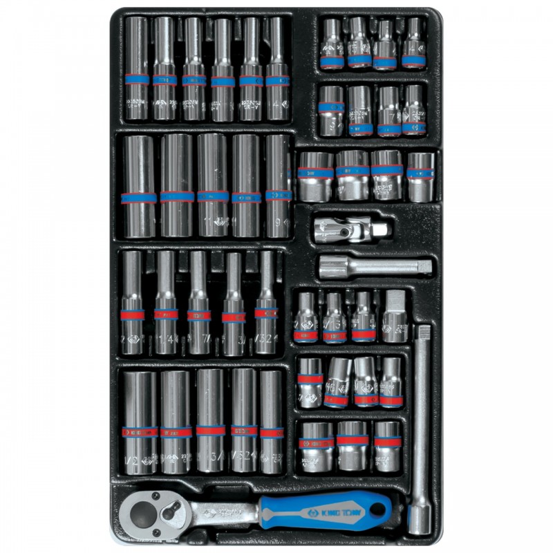 Набор торцевых головок 1/4 с принадлежностями, ложемент, 48 предметов KING TONY 9-2548CR