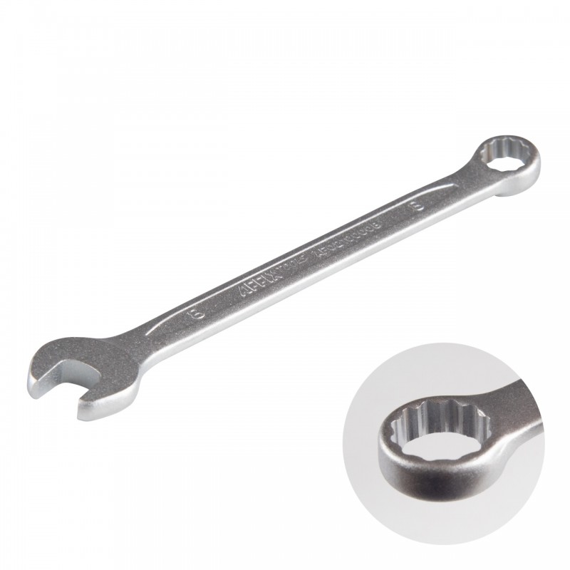 Размер 8 мм Рабочий профиль рожковый / накидной 12-гранный Материалы инструментальная сталь Cr-V, хром Размеры 121,5?19,5?5,5 мм Вес 0,029 кг