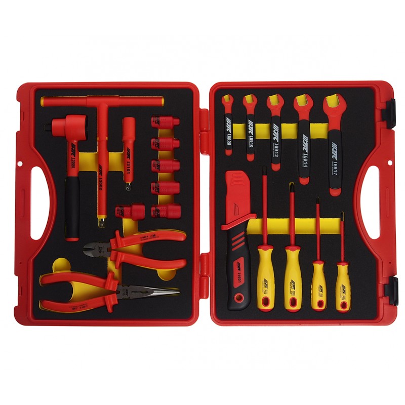 Набор инструментов 22 предмета слесарно-монтажный 3/8 10-24мм изолированных в кейсе JTC JTC-I017