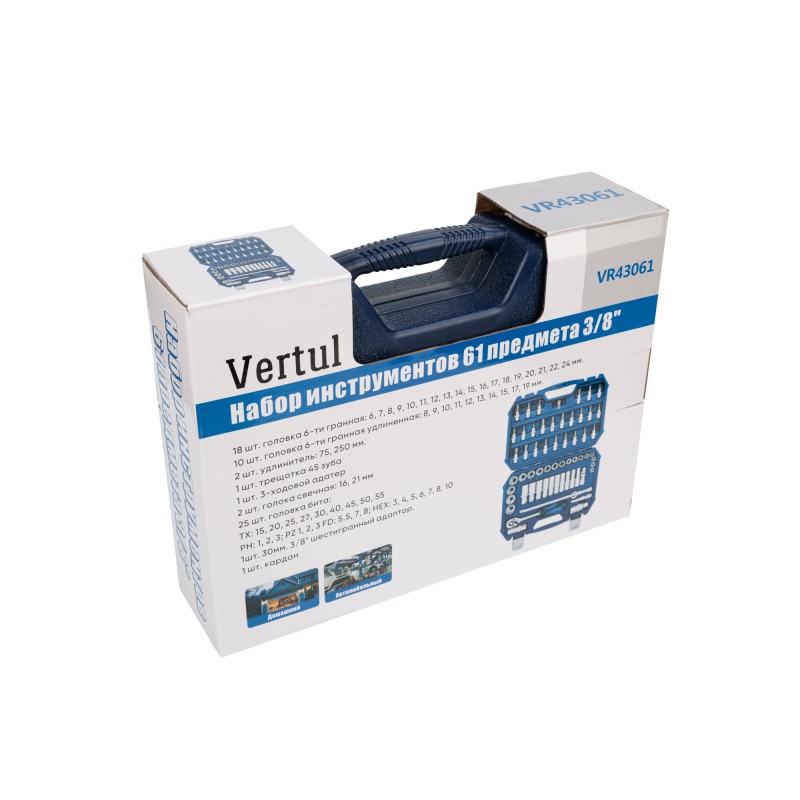 18 шт. головка 6-ти гранная: 6, 7, 8, 9, 10, 11, 12, 13, 14, 15, 16, 17, 18, 19, 20, 21, 22, 24 мм.