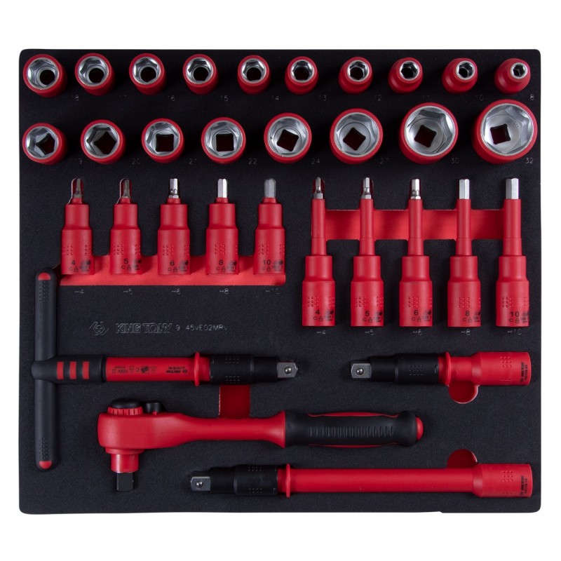Набор торцевых диэлектрических головок с принадлежностями 1/2, шестигранные, 8-32 мм, ложемент, 32 предмета KING TONY 9-45VE02MRV