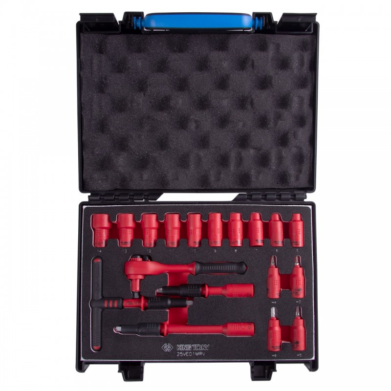 Набор торцевых диэлектрических головок с принадлежностями 1/4, шестигранные, 5-14 мм, 18 предметов KING TONY 25VE01MRV