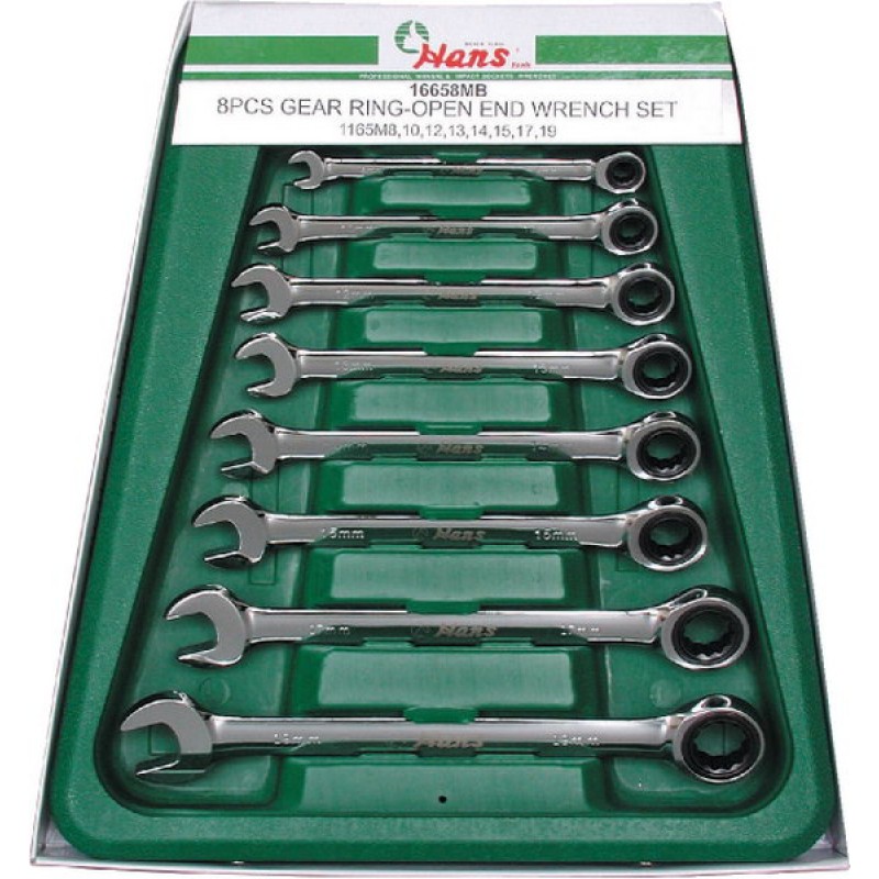Набор ключей трещоточных комбинированных Hans, 8 предметов 16658MUB