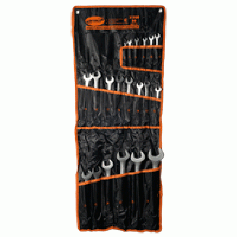 Набор состит из 20 гаечных комбинированных ключей упакованных в прочную тетроновую сумку. Ключи изготовлены из хромсодержащей стали CRV6150 методом горячей штамповки (ковки на молотах). Рабочие профили ключей термически доведены до твёрдости 39-41 HRC. Ключи имеют стадартный профиль открытой части ключа, на кольцевой части профиль OVER DRIVE, который отлично приспособлен для работы с неповреждённым крепежом, так и с крепежом имеющим зализы , закусы и прочие повреждения рабочей поверхности. Ключи подходят для работы с любыми разновидностями шестигранного крепежа, угол наклона кольцевого зева 15 градусов относительно плоскости ключа обеспечивает более удобный монтаж. Ключи защищены от коррозии матовым хромированием. В набор входят ключи размеров 6,7,8,9,10,11,12,13,14,15,16,17,18,19,21,22,24,27,30,32