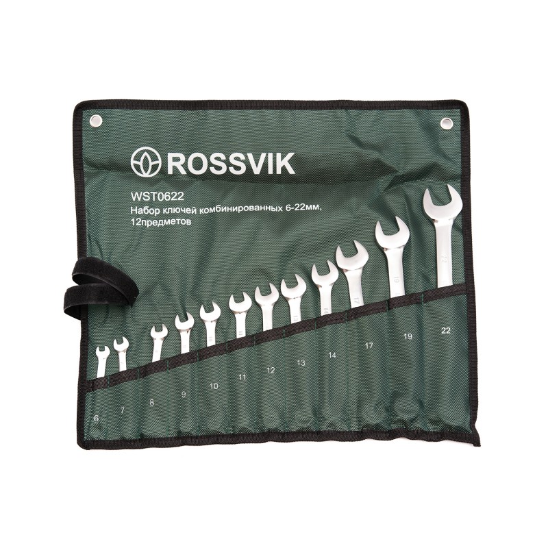 Набор ключей комбинированных ROSSVIK 6-22мм, 12шт WST0622 один из самых распространенных типов инструмента, гаечный ключ представляет собой конструкцию, объединяющую две части -рожковую и накидную. Инструмент производится из стали высокой прочности. Покрытие ключа устойчиво к царапинам и прочим механическим воздействиям. Используется на станциях технического обслуживания, автомобильных мастерских, промышленности и в быту. Поставляется в удобном прочном чехле, где каждый ключ располагается в отдельном кармане, что позволяет удобно хранить и транспортировать набор.