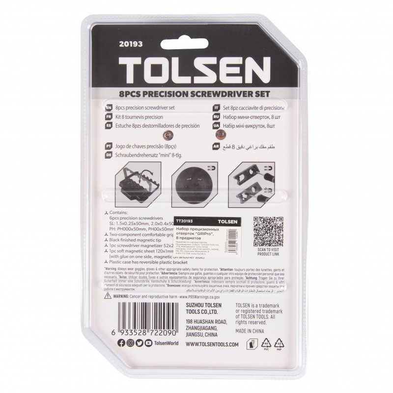 Набор прецизионных отверток GRIPro, 8 предметов TOLSEN TT20193