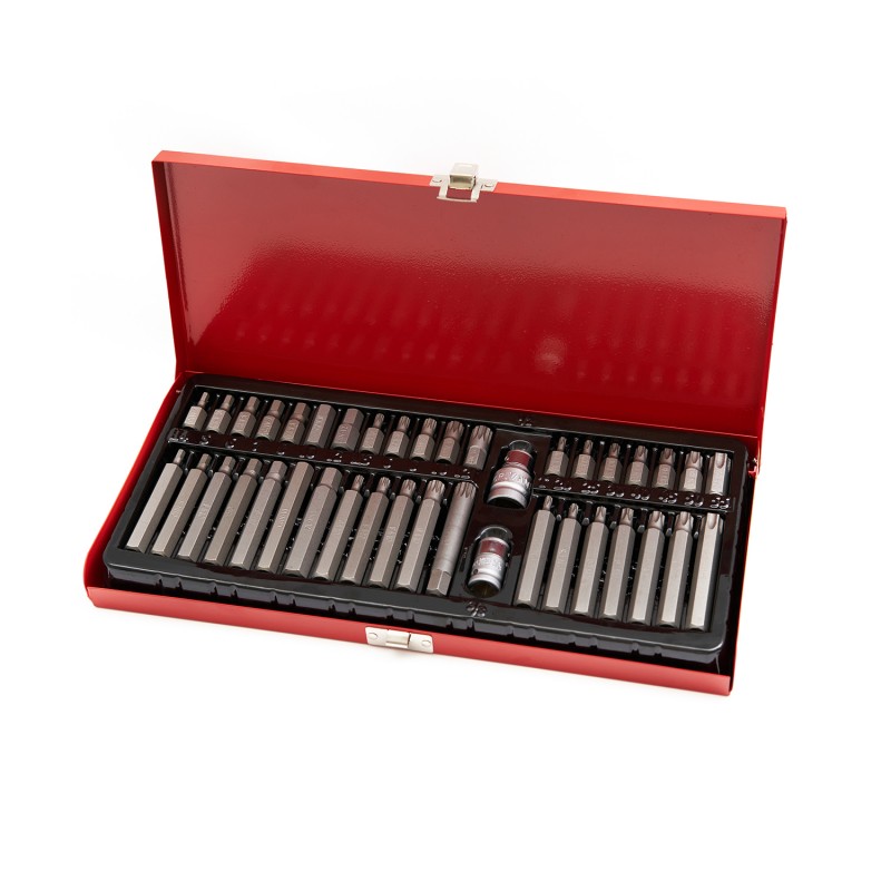 Набор вставок-бит ST097 состоит из 40 предметов, которые предназначены для работ с крепежом. Применяется для оснащения передвижных инструментальных тележек, верстаков, при создании рабочих мест на СТО и других предприятиях, занимающихся обслуживанием, а так же ремонтом различной техники. Инструмент поставляется в металлическом кейсе, что облегчает его транспортировку и делает эксплуатацию более удобной.