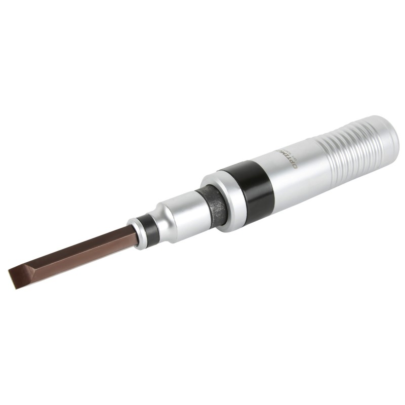 Ударная отвертка с комплектом бит Optimus OPT-SI3030. Применяется для откручивания туго завинченных резьбовых соединений. При ударе по бойку отвертки происходит проворот биты.