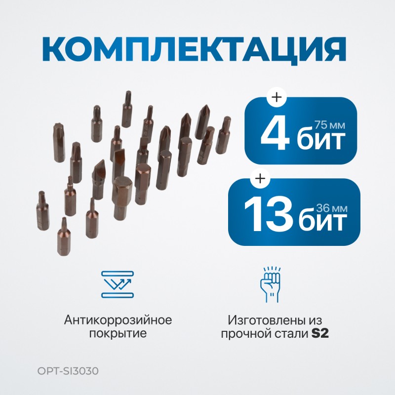 Ударная отвертка с набором бит, 30 предметов OPT-SI3030