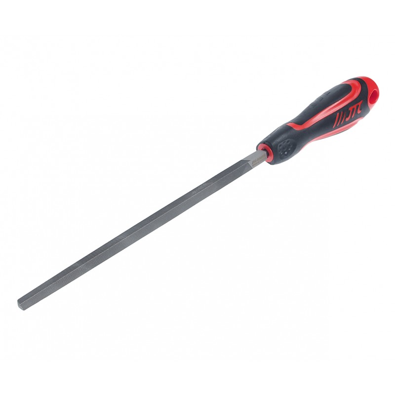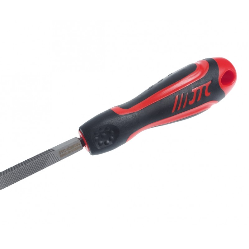 Квадратный напильник JTC-K8053S со средними зубьями имеет длину в 200 мм и прорезиненную анатомическую рукоятку с отверстием для подвешивания инструмента.