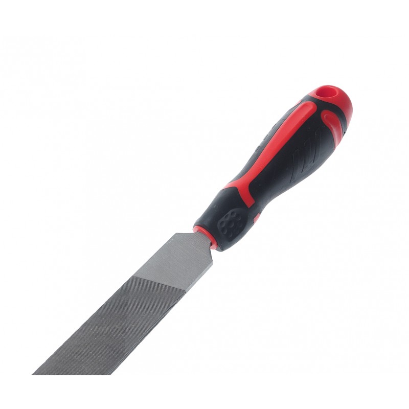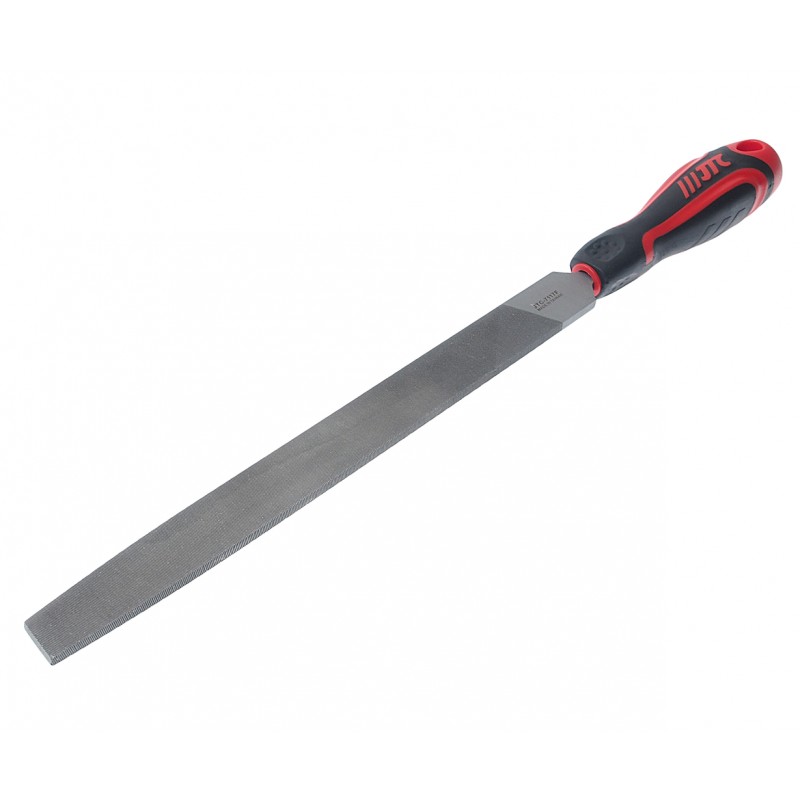 Плоский напильник JTC-K8053F со средними зубьями имеет длину в 200 мм и прорезиненную анатомическую..