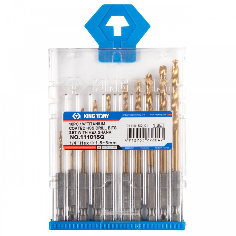 Набор сверл по металлу HSS Tin 1,5-5,0 мм, с шестигранным хвостовиком, 10 предметов KING TONY 11101SQ