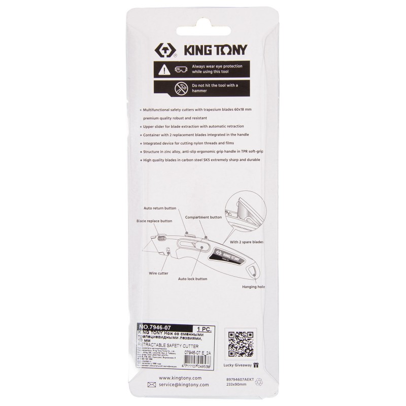 Нож со сменными трапециевидными лезвиями, 19 мм KING TONY 7946-07